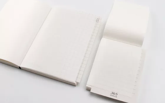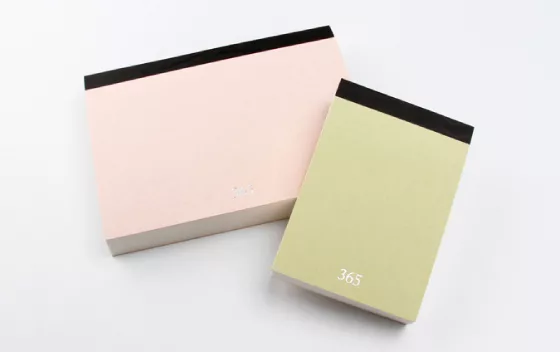 365 notebook是由一間已具有近百年歷史的日本日曆製造老鋪所推出的筆記本品牌紙張也使用他們獨家開發、作為日曆紙使用的紙張,因此具有輕薄的特性,即使是一本厚達380張紙的筆記本也不顯笨重、擁有足夠的記事容量與攜帶性。多張數的內頁也大幅降低單頁的書寫成本、可以享受暢快書寫的樂趣。