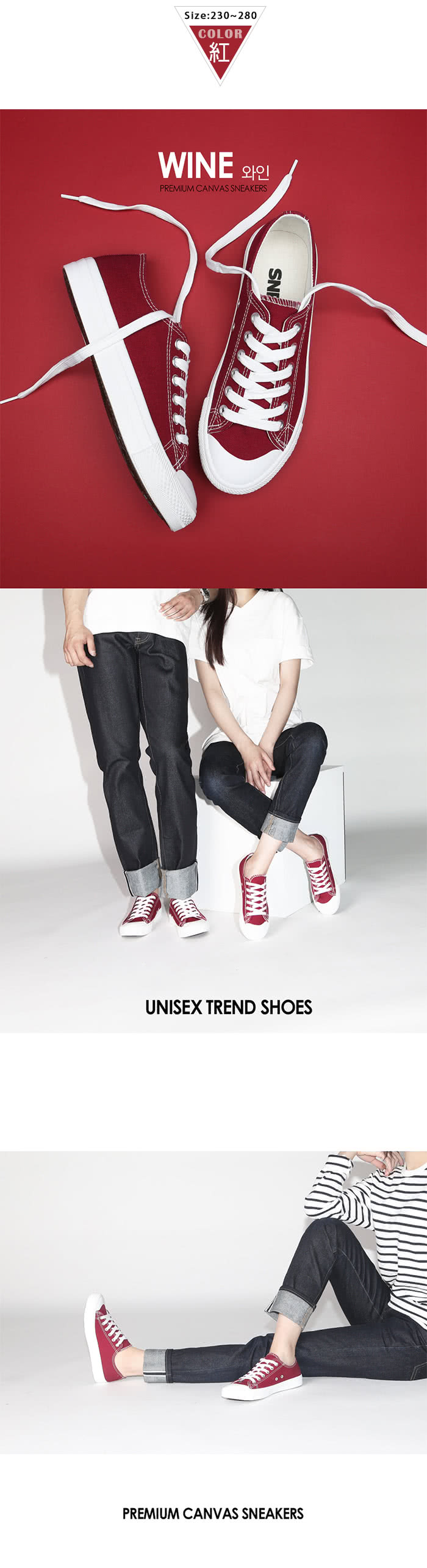 【Paperplanes】韓國空運-正常版型。情侶款純棉拼接橡膠男女綁帶帆布休閒鞋(7-152紅-現+預)